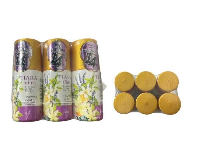 TIARA โรลออนเทียร่าเชรั่ม สีม่วง 40g แพ็ค 6 ขวด