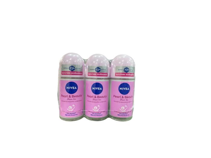 NIVEA ROLL ON PEARL&BEAUTY SHAVELESS50ML นีเวียญ โรลออน เพิรล์&บิวติ้ เชฟเลส 50 ml จำนวน แพ็ค 3 ขวด