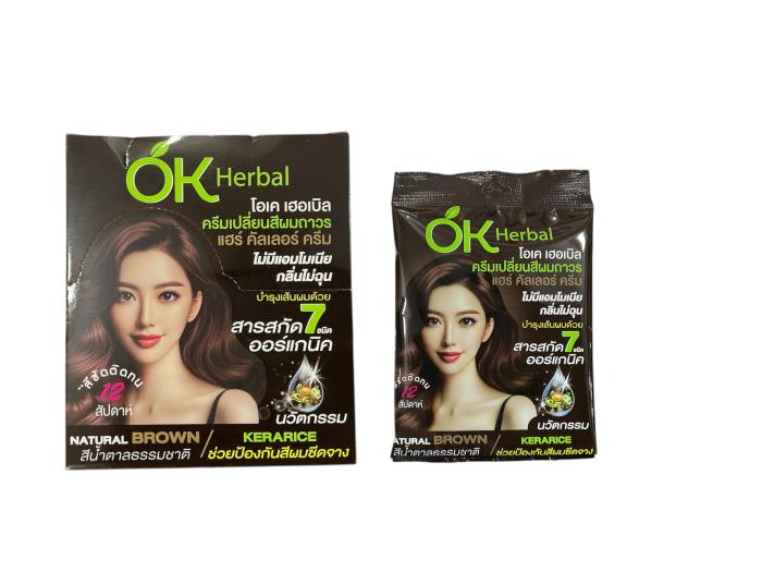 OK Herbal โอเค เฮอเบิล ครีมเปลี่ยนสีผมถาวร แฮร์ คัลเลอร์ ครีม 60ml สีนำ้ตาลธรรมชาติ กล่อง 6 ชิ้น