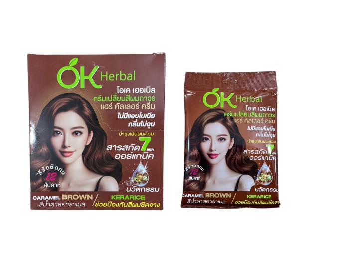OK Herbal สีนํ้าตาลคาราเมล กล่อง12ซอง ဆံပင်ဆိုးဆေး
