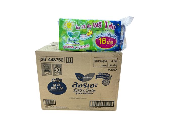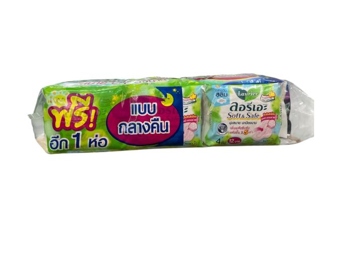 Laurier ผ้าอนามัยกลางคืน สีเขียว จำนวน ลัง 10 แพ็ค
