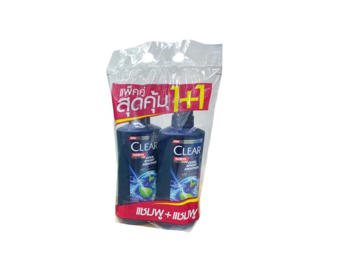 CLEAR MEN COOL SPORT MENTHOL เคลียร์ ผู้ชายแชมพู+แชมพู สีนำ้เงิน 2x370ml จำนวน แพ็คคู่ สีนำเงิน
