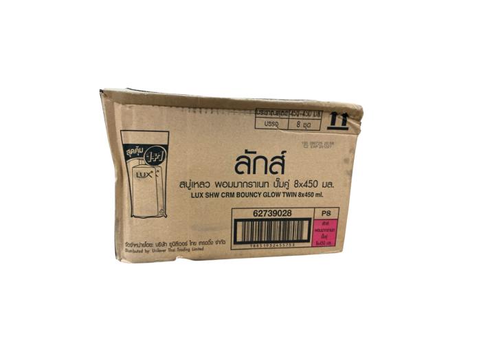 Lux Bouncy Glow คริมอานำ้ 450ml จำนวน ลัง 8 ชุด ရေချိုးဆပ်ပြာရည်
